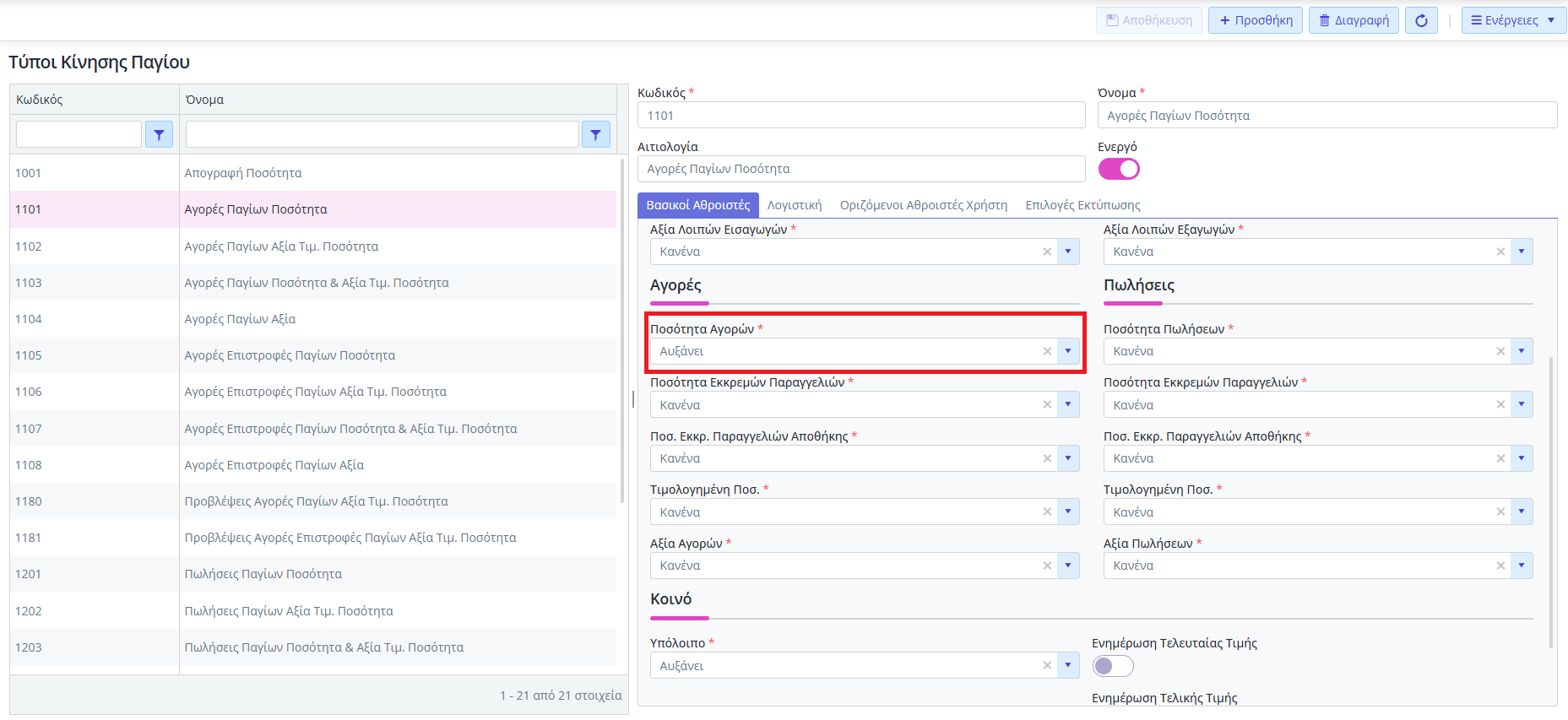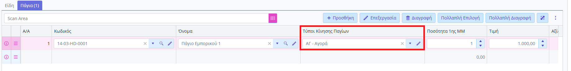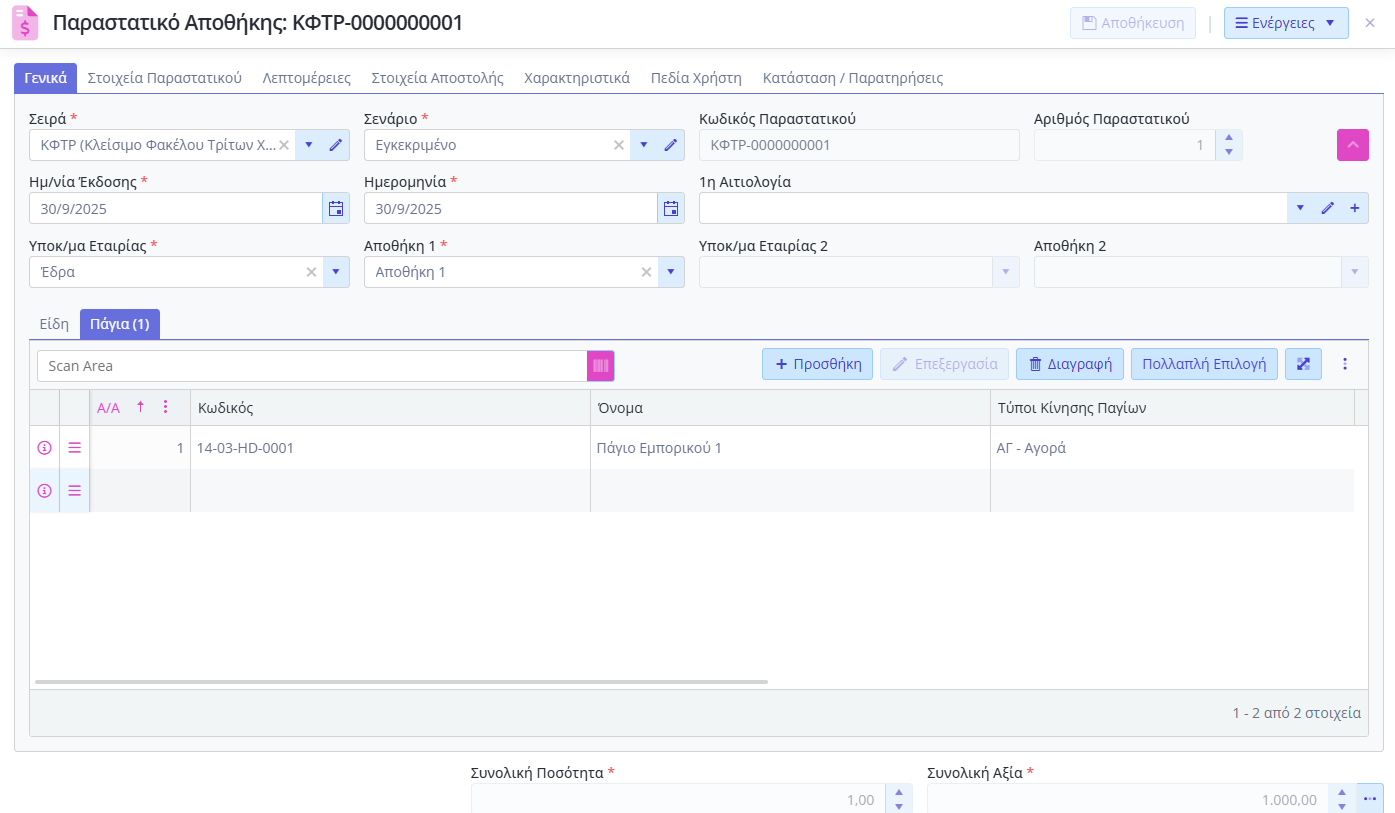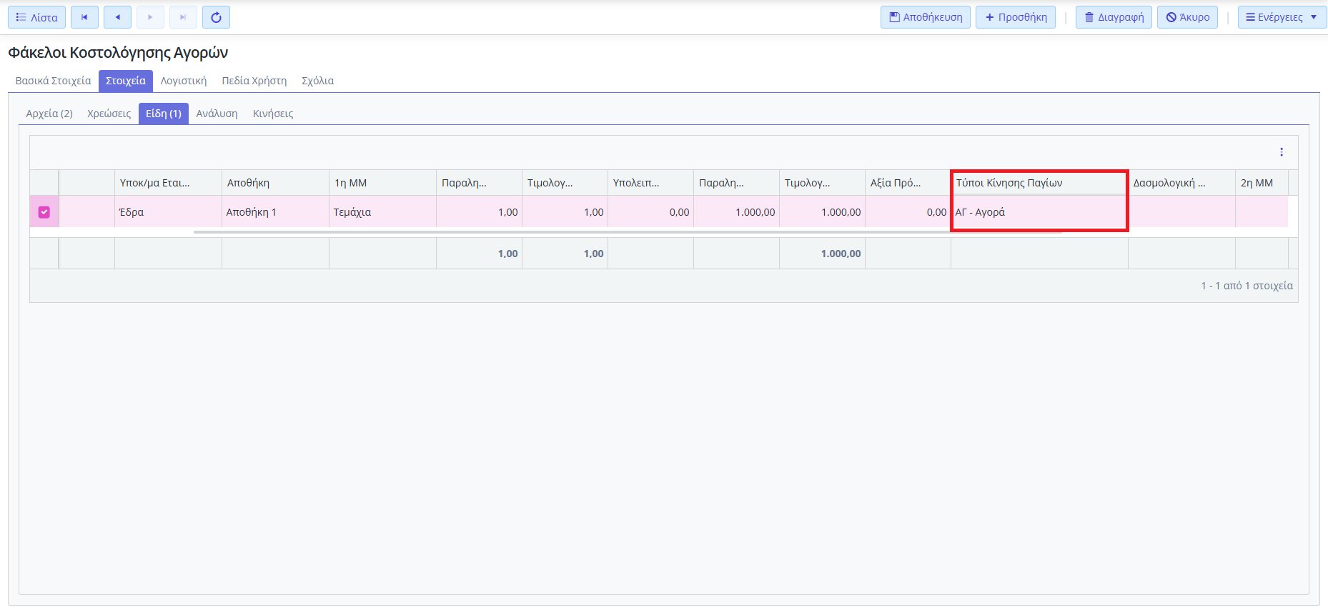 Σε αυτή την περίπτωση το παραστατικό Αγοράς θα ενημερώσει κανονικά το πάγιο με κίνηση Αγοράς.
