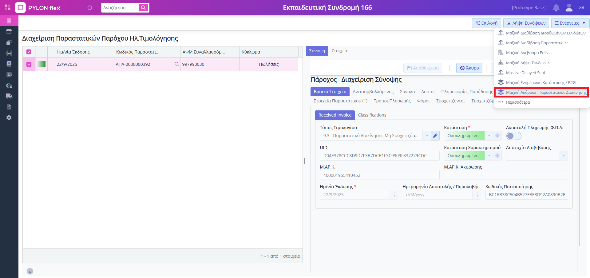 Στη μαζική εργασία «Διαχείριση Παραστατικών Παρόχου Ηλ. Τιμολόγησης» έχει προστεθεί η δυνατότητα: