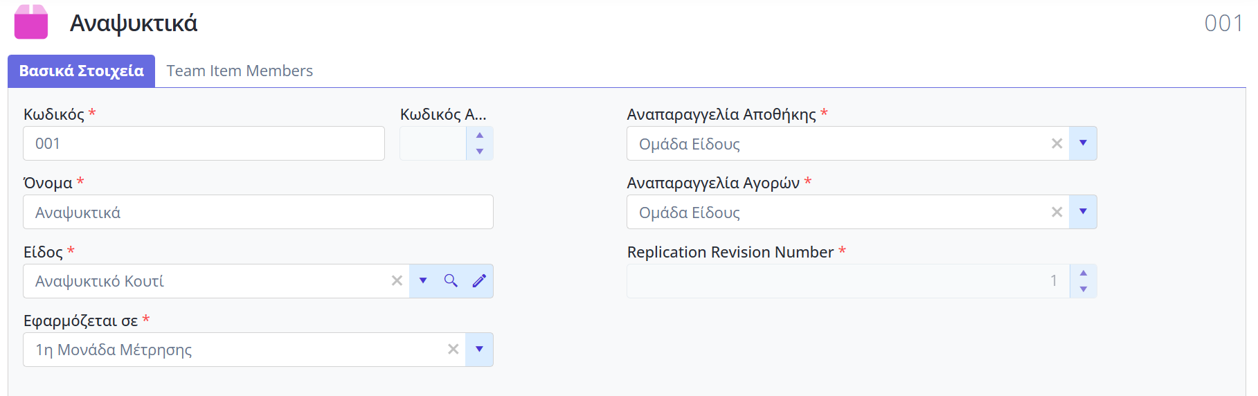 Στη συνέχεια, στο tab Team Item Members (Είδη Μέλη ομάδα):