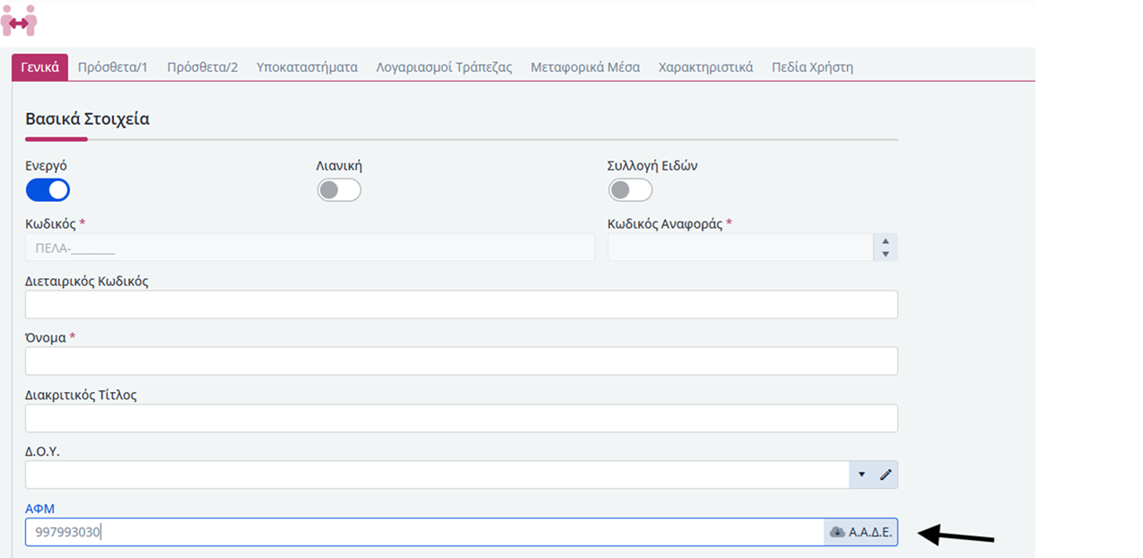 Αυτόματη Συμπλήρωση πληροφοριών πελάτη με Λήψη Στοιχείων ΓΓΠΣ