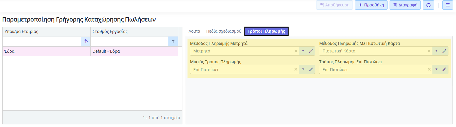 Στο tab Τρόποι Πληρωμής: