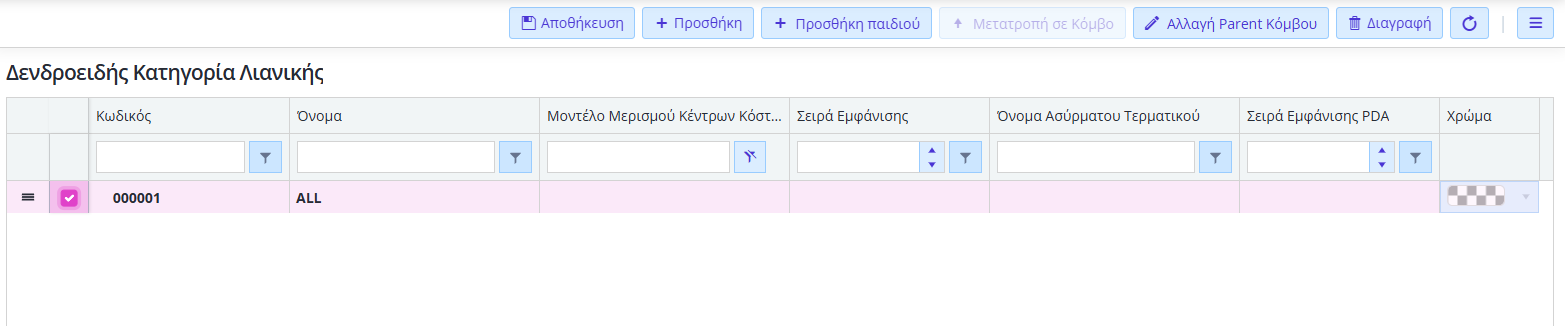 - Επιπλέον, επιλέγετε Δενδροειδή Κατηγορία Λιανικής για δενδροειδή ομαδοποίηση ειδών (Οργάνωση → Λιανική/Εστιατόριο → Λιανική).