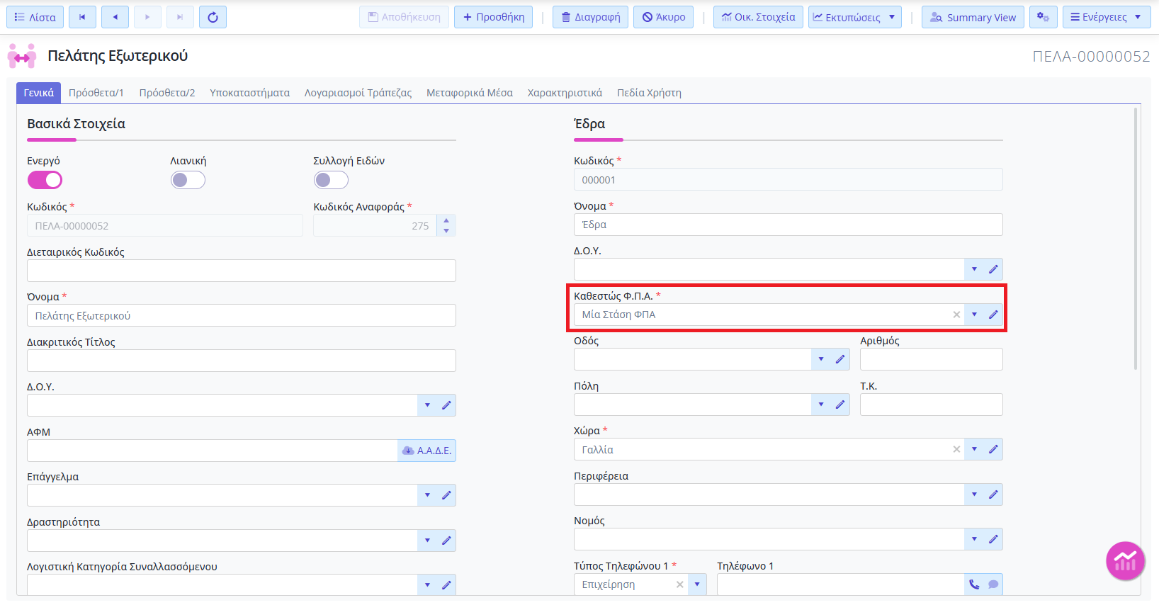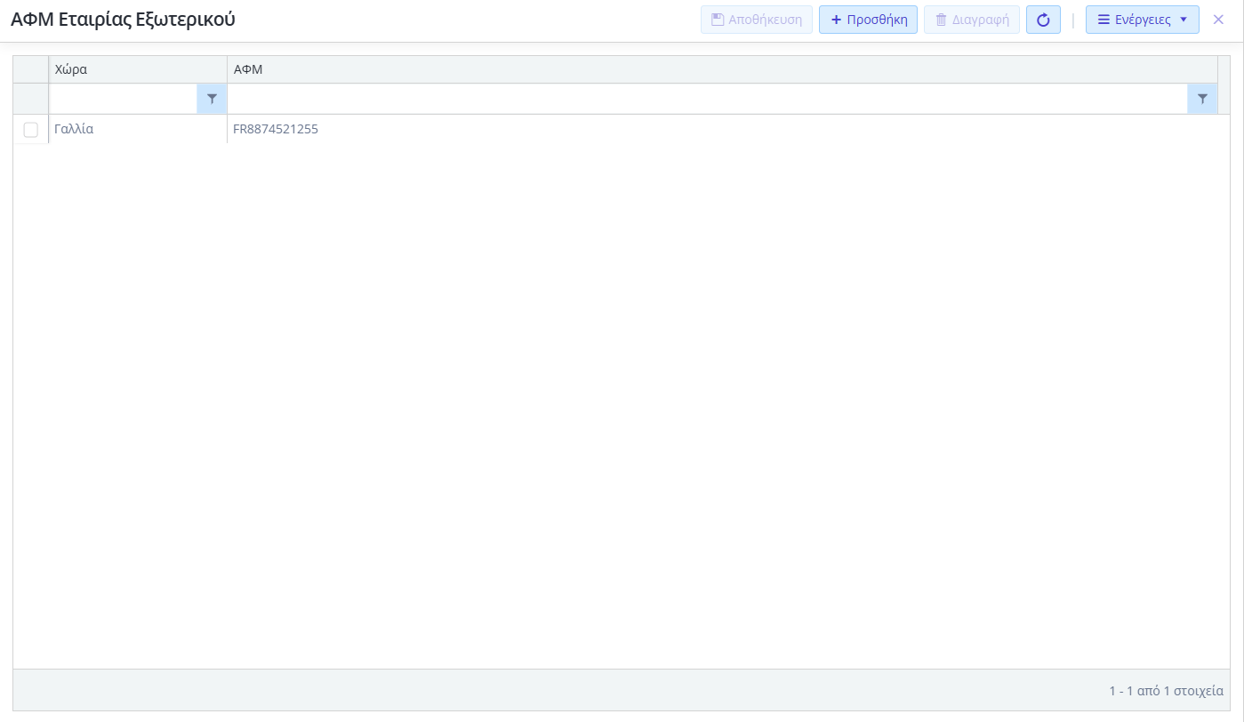 - Ξένο ΑΦΜ : Στην περίπτωση που η εταιρεία του πελάτη έχει δικό της ΑΦΜ σε χώρες του εξωτερικού.