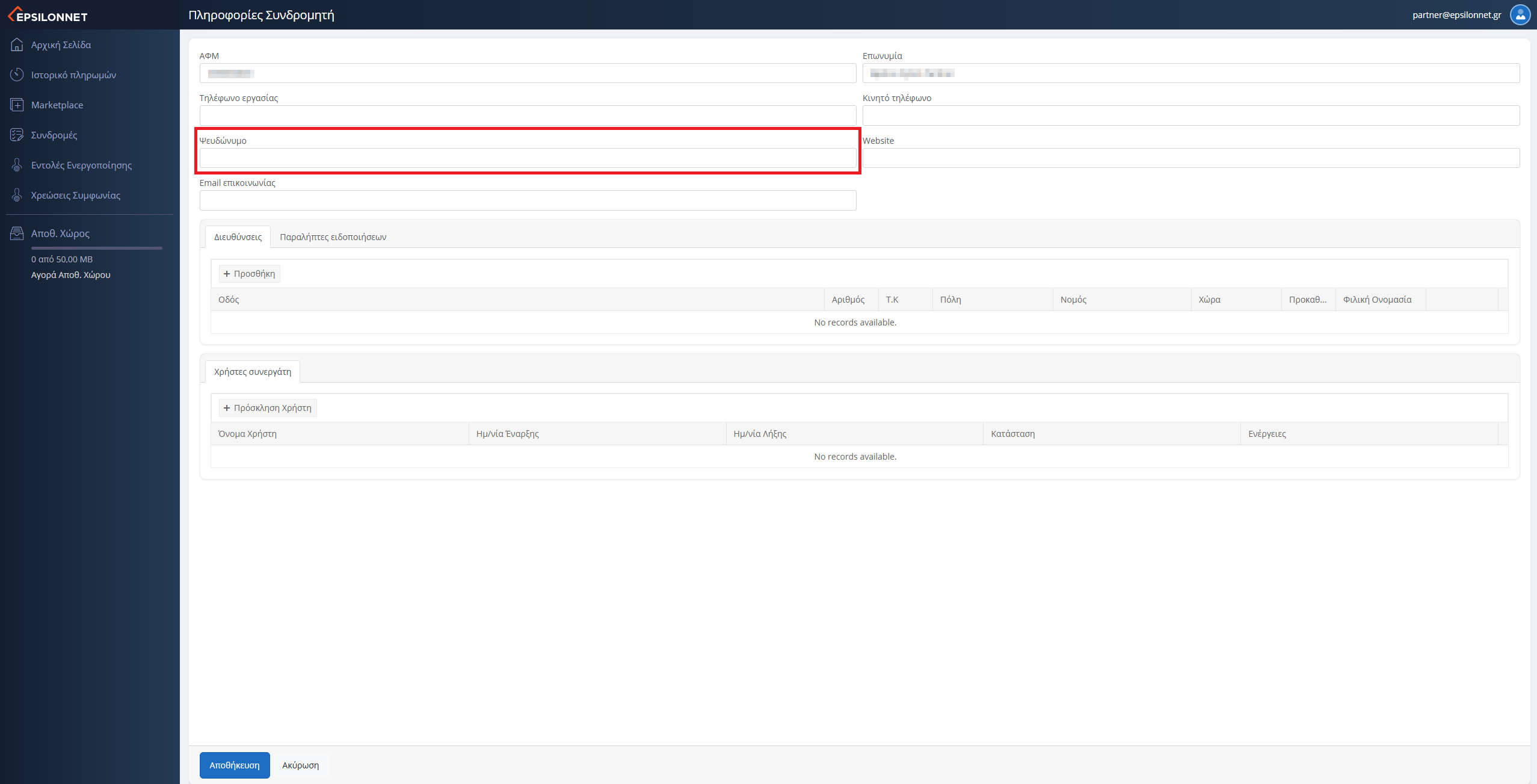 6.Πατήστε «Αποθήκευση» για να καταχωρηθεί η αλλαγή.