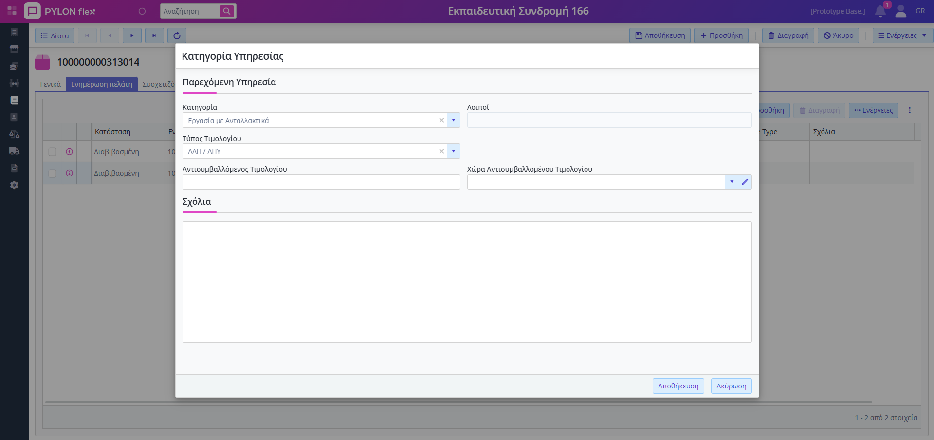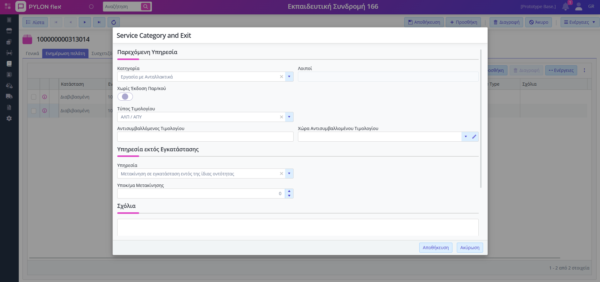 - Κατηγορία Υπηρεσίας και Έξοδος