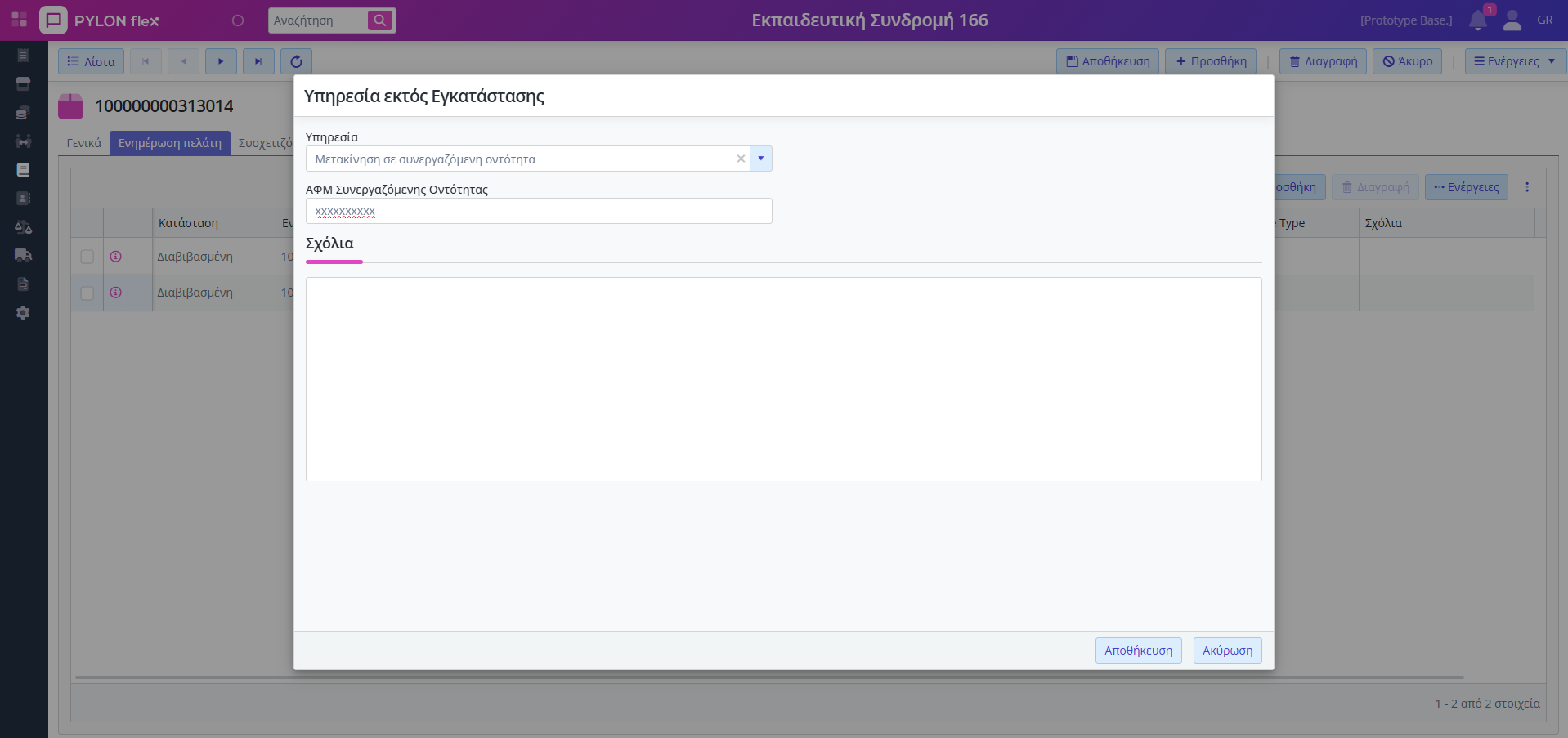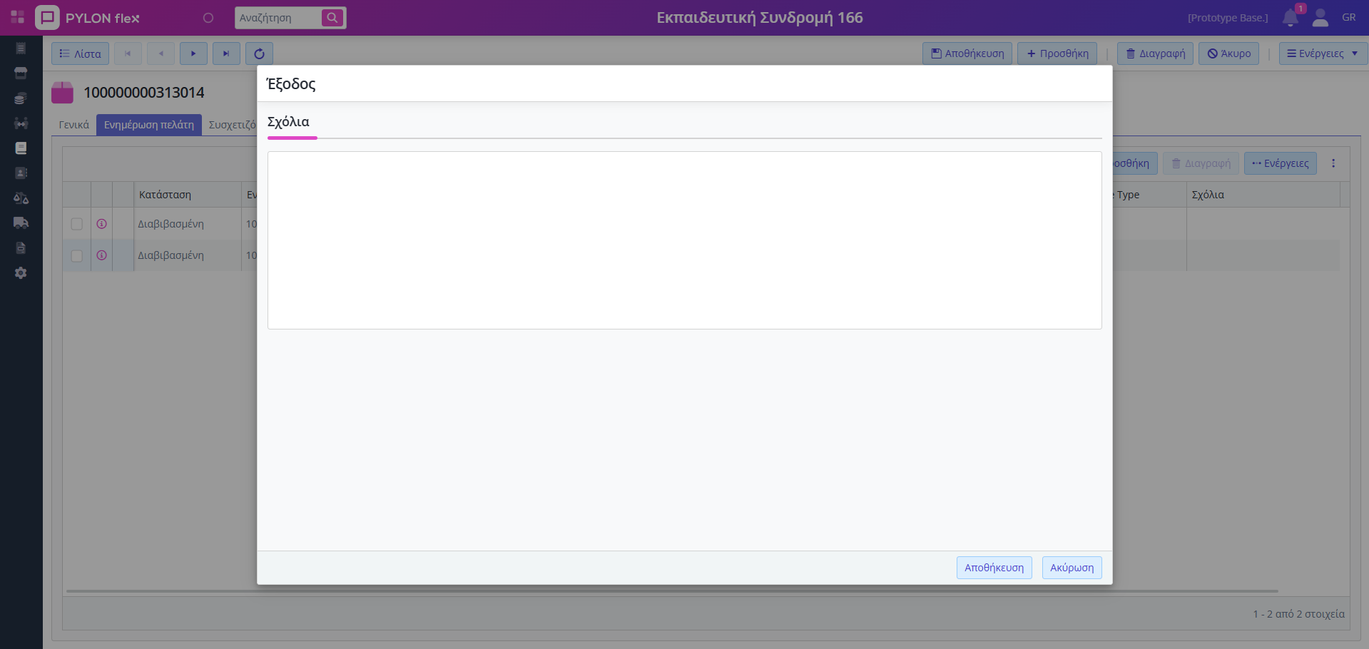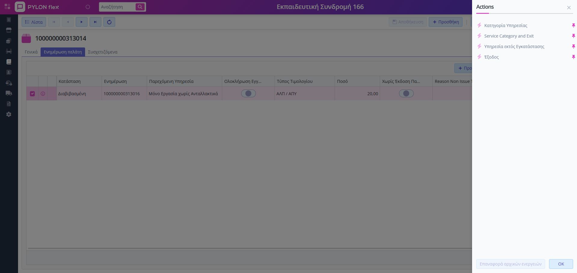 Από την έκδοση 25.01.16 έχουν προστεθεί νέες ενέργειες στο grid Ενημέρωσης Πελάτη.