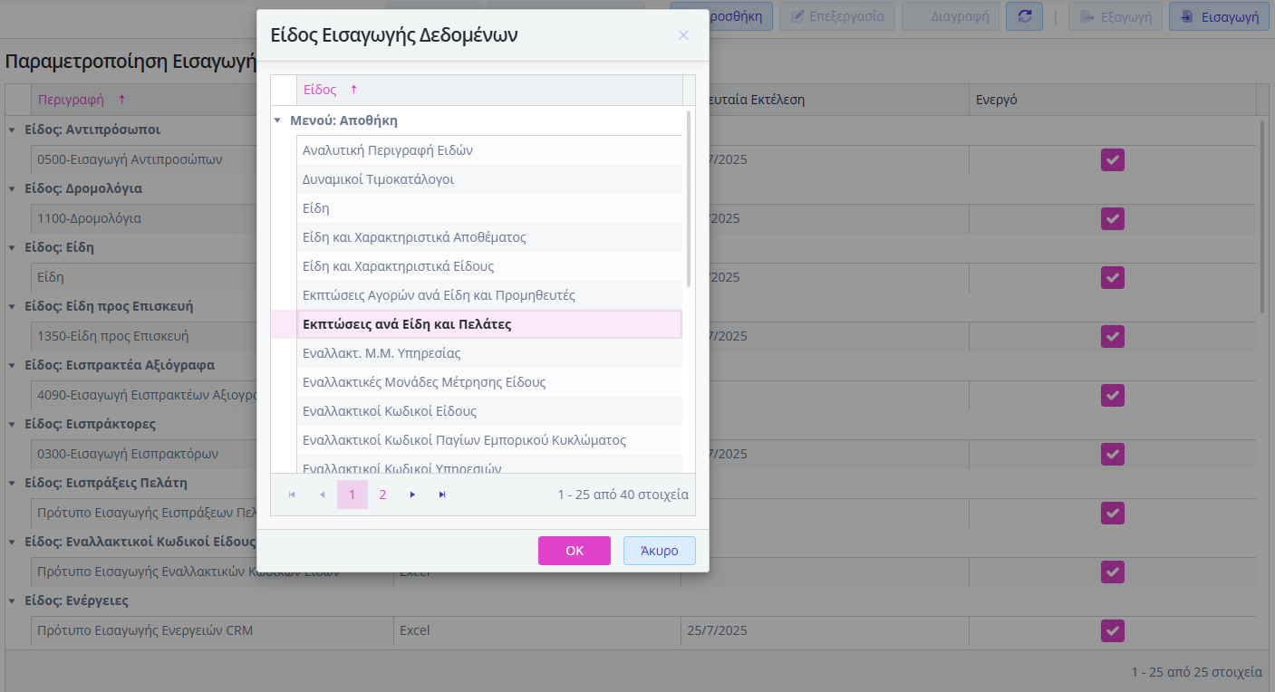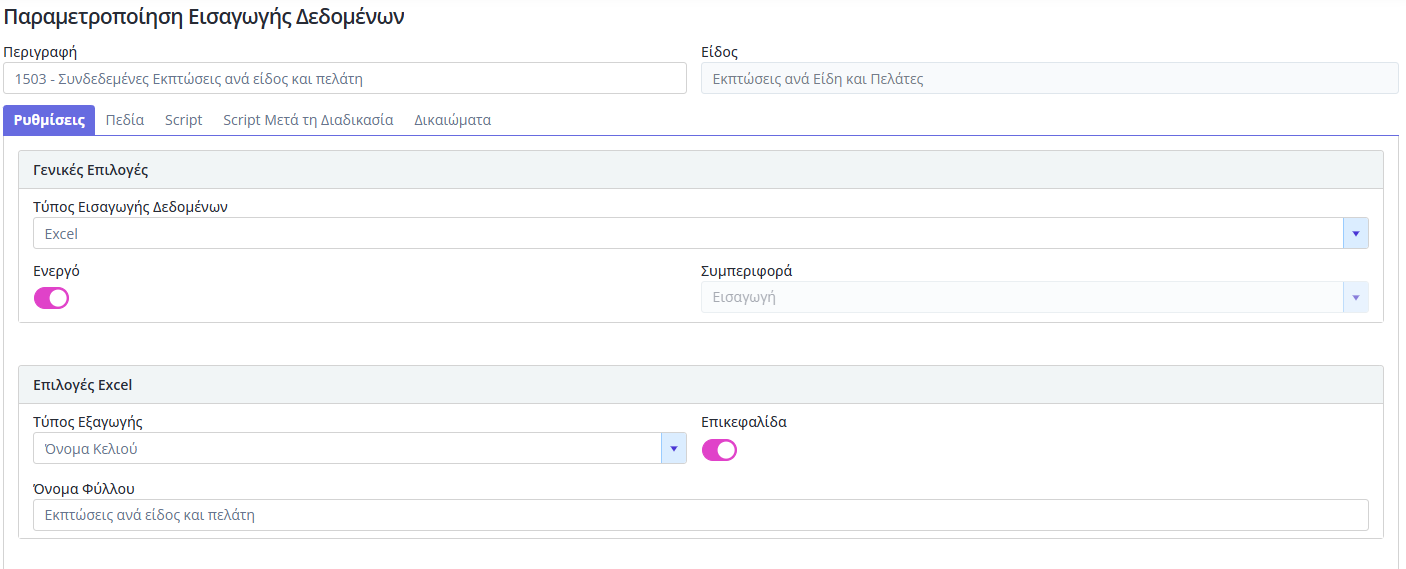 Σενάριο Εισαγωγής Δεδομένων μέσω Excel – Εκπτώσεις Ειδών Πελατών (Συν)
