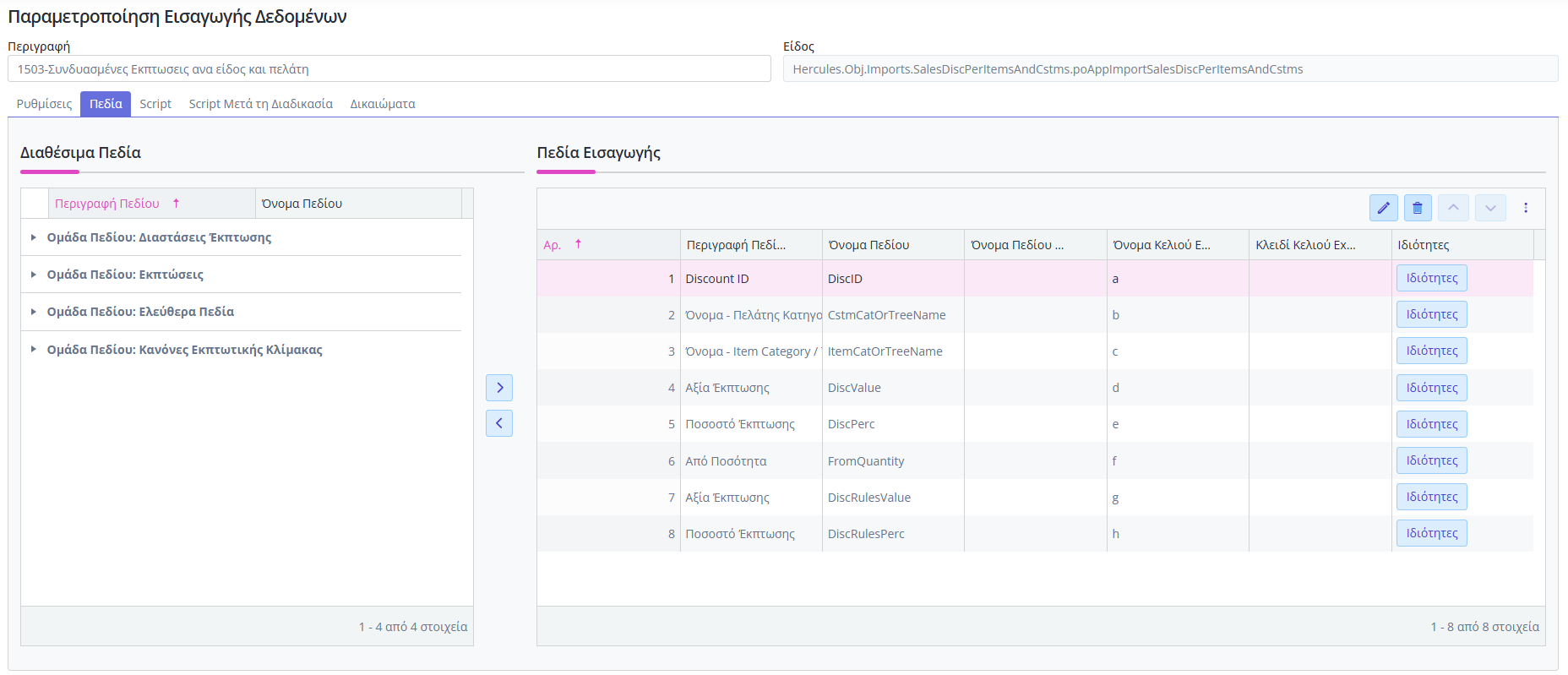 - Αν θέλετε να είναι διακριτές οι εκπτώσεις που δημιουργήθηκαν μέσω της εισαγωγής, μπορείτε να χρησιμοποιήσετε ένα Αλφαριθμητικό πεδίο (UserDefText) με την τιμή “Από Εισαγωγή”.
