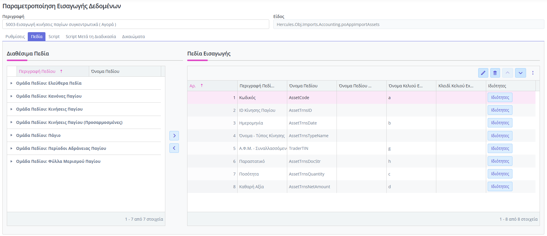 - Πρότυπο Σενάριο Εισαγωγής Αρχείου κινήσεις παγίων συγκεντρωτικά ( Αγορά )